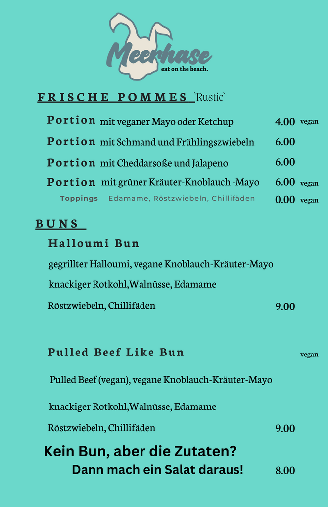 Der Foodtruck Meerhase ist bekannt für seine leckeren veganen und vegetarischen Speisen. Mit frischen Zutaten und einem wechselnden Menü zieht er Einheimische und Touristen gleichermaßen an. Ich, Uli Seehase-Harbs lege Wert auf nachhaltige und gesunde Produkte sowie umweltfreundliche Verpackung. Der Foodtruck bietet eine entspannte Atmosphäre und ist ein beliebter Treffpunkt für Familien und Genussliebhaber, die gesunde und schmackhafte Snacks suchen.